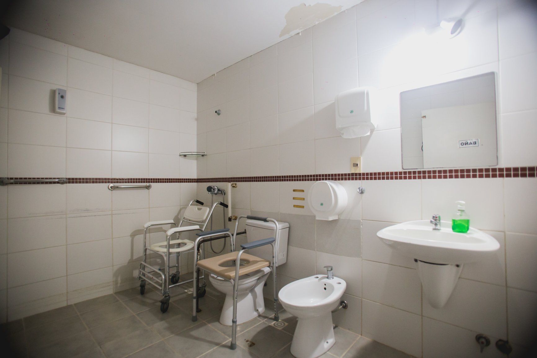 Los baños son acondicionados 100% para adultos mayores, donde los Residentes siempre son acompañados y supervisados.